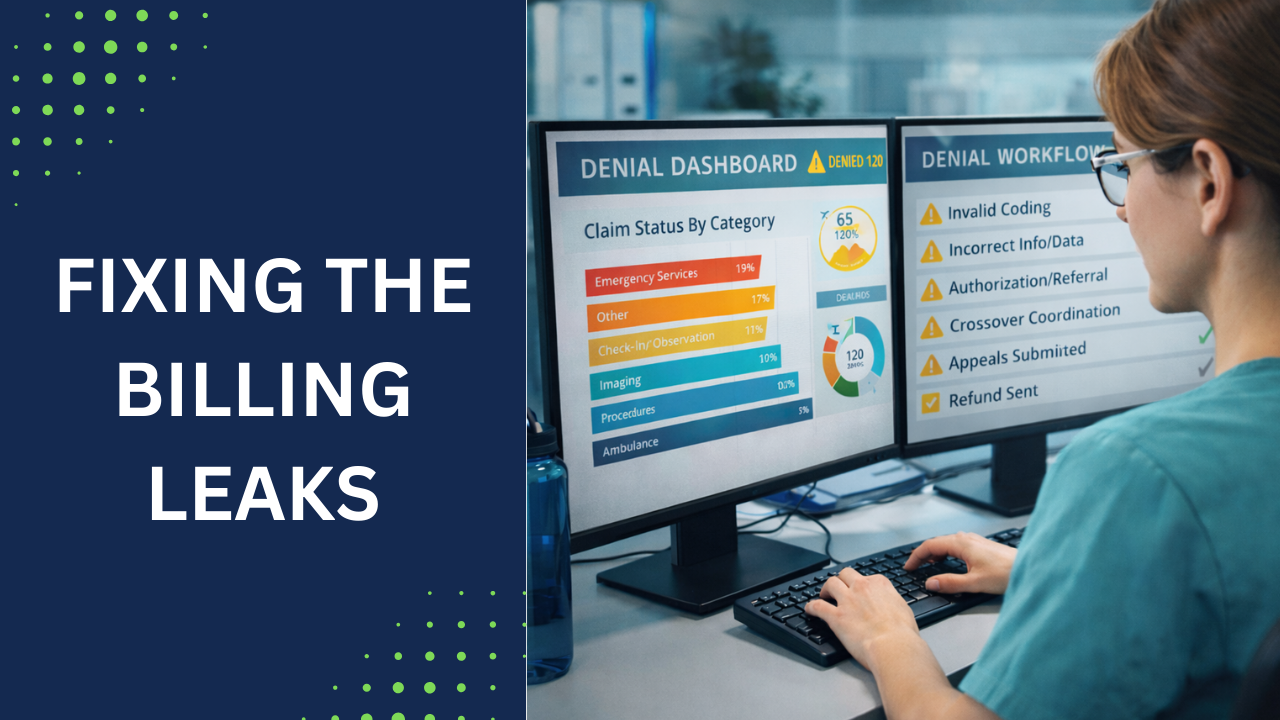- Poor denial follow-up — denials must be worked daily, with categorized appeals and deadline tracking.